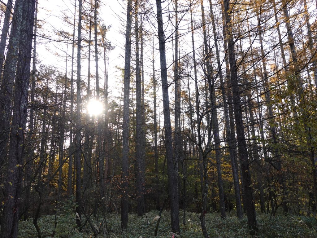 店の裏の森も葉が落ちてきたので隙間が多く秋景色