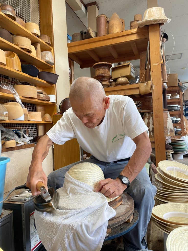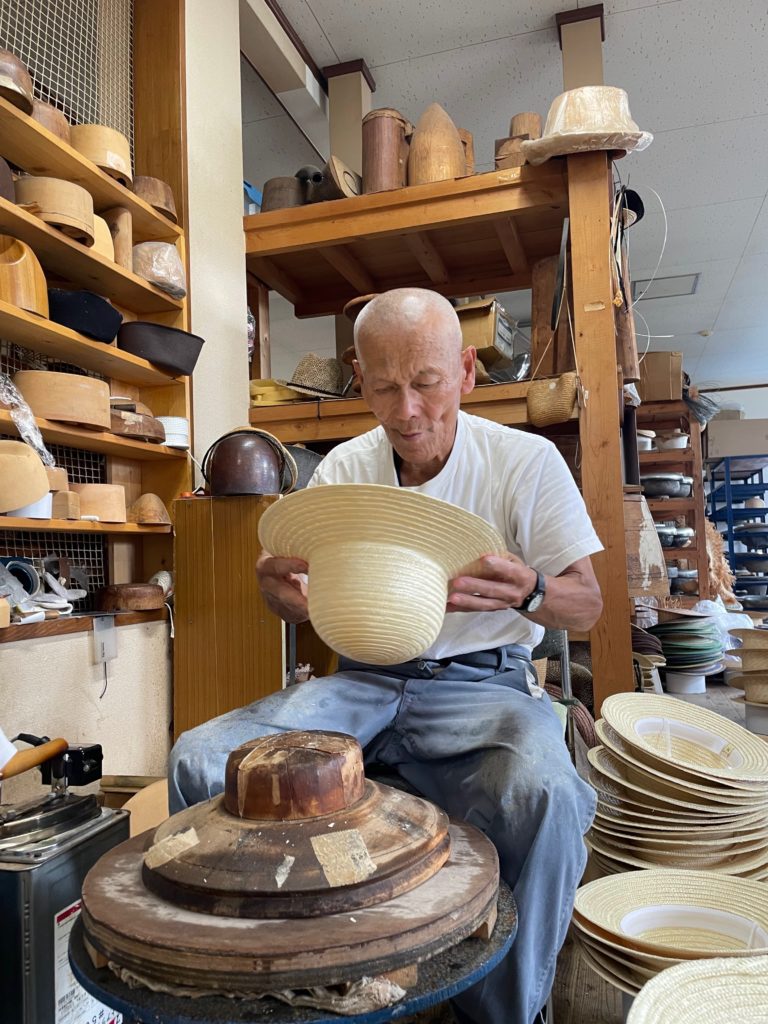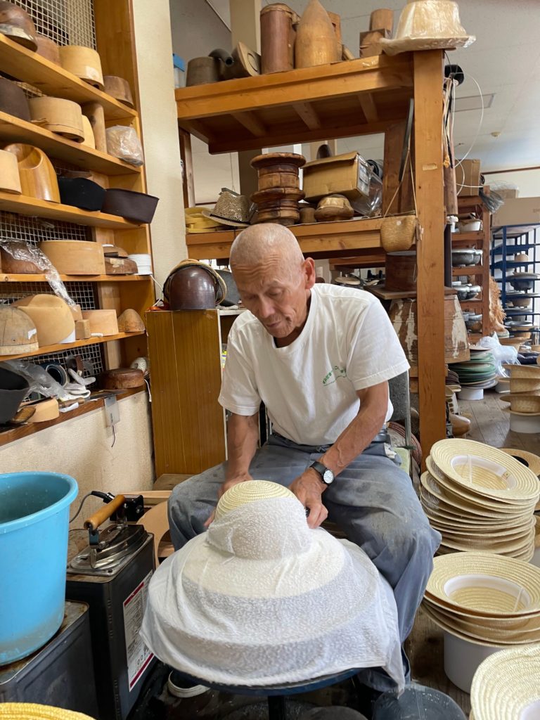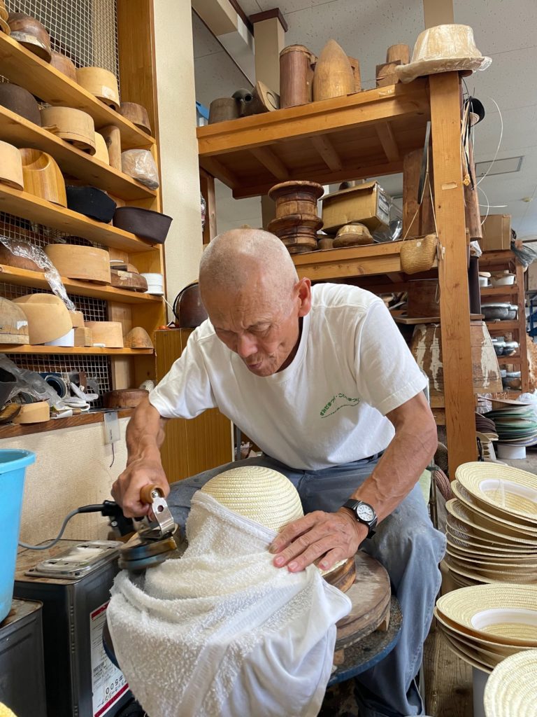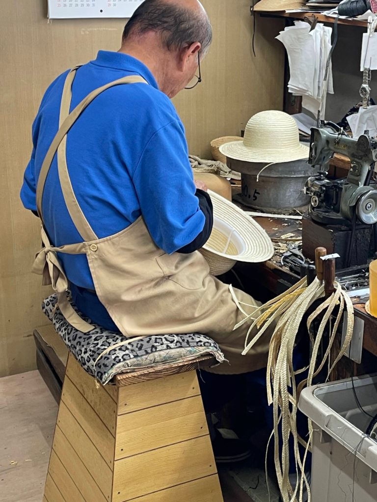 自分が初めて訪ねた頃は長いテーブルに多くの職人が横に並んで爽快なミシンの音とともにどんどん麦わら帽子を縫い上げていってましたがその後大量に入ってきた安い海外製品に太刀打ちできず日本製は衰退の一途でした